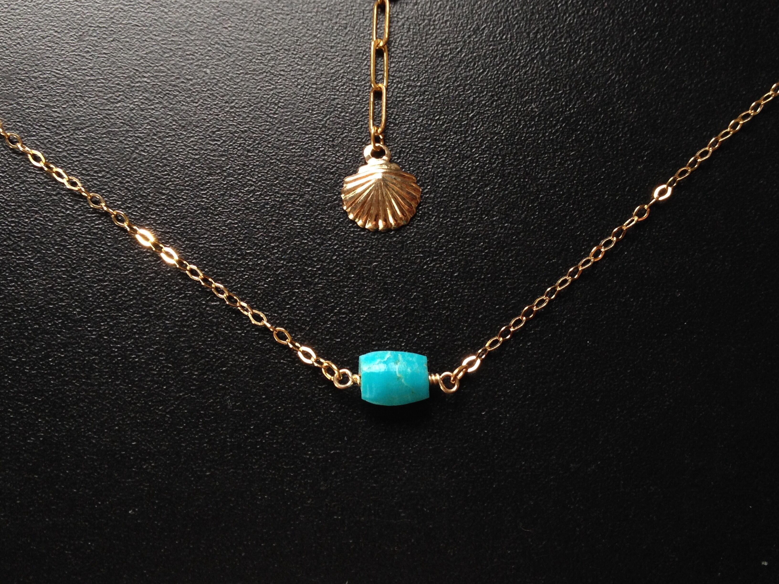 14KGF ナチュラルターコイズ(マット) × シェル アンクレット