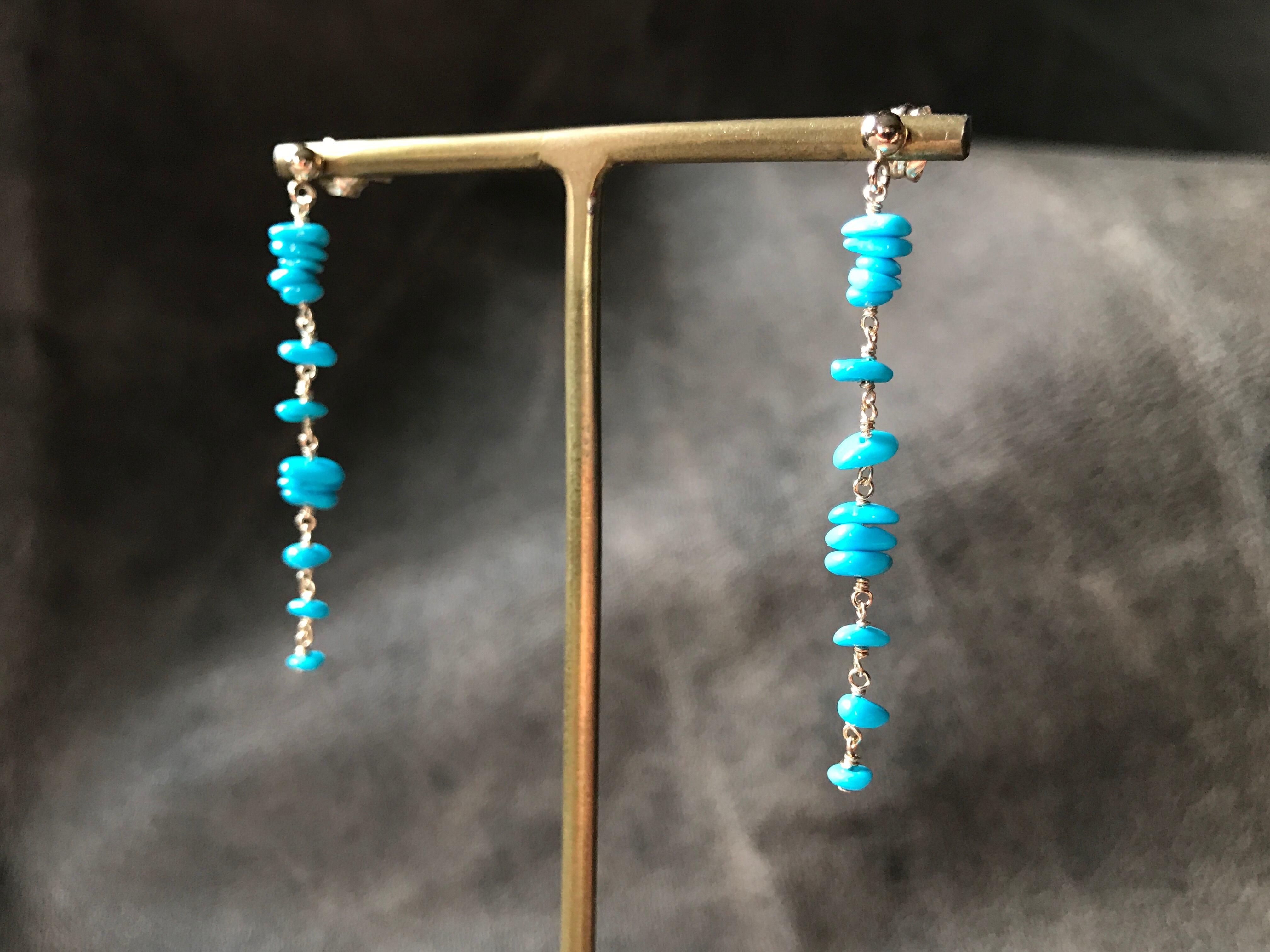 鮮やかな水色と高い透明感が美しい、天然ターコイズを使用したピアスです。